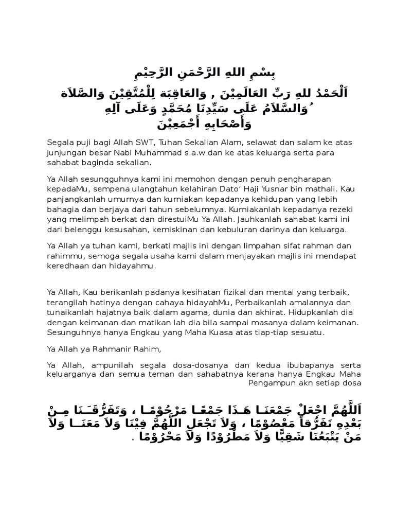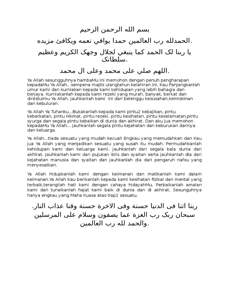 Doa Untuk Sempena Majlis Sambutan Hari Lahir Pdf